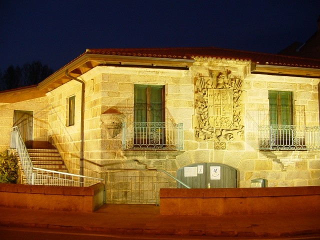 De 1734 es el ostentoso blasón que enseñorea la fachada y que por su fecha y armas (Castro, Santa Cruz y Puga) debió pertenecer al maestre de campo, general de artillería y caballero de la Orden de Santiago, don Pedro de Castro, natural de Verín.